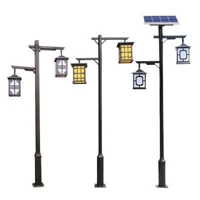 太陽能庭院燈小區戶外防水花園燈3米雙頭中式仿古園林景觀燈 路燈