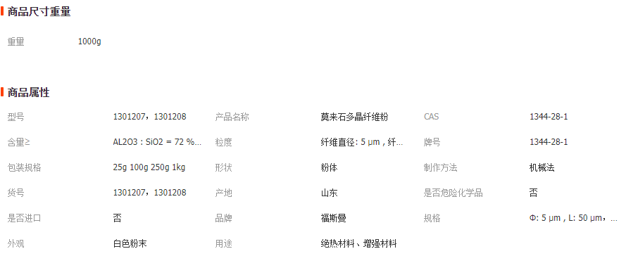 福斯曼 廠家現貨 直徑5微米 莫來石多晶纖維粉 陶瓷纖維粉