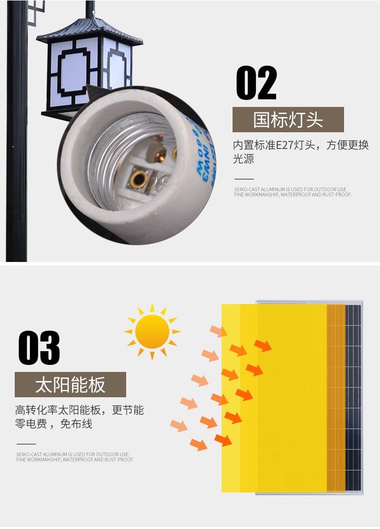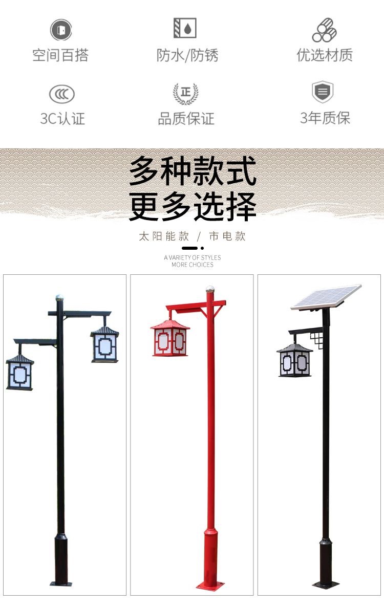 廠家批發3.5米LED新中式公園小區室外防水裝飾太陽能庭院景觀燈